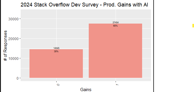 A research study shared by my colleague Mark Wilkinson found that AI does not necessarily improve productivity among programmers. This study is based on a small sample of programmers and has interesting findings related to higher productivity.
