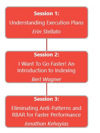This year, we have what is called ‘Learning Paths’. These are guided pathways through sessions that target specific learning needs. Each ‘pathway’ is multiple sessions taught by multiple people. You have no obligation to follow a pathway to attend them but you would probably gain more if you did. For example, a ‘pathway’ on SQL Performance for the developer has 3 sessions as below.